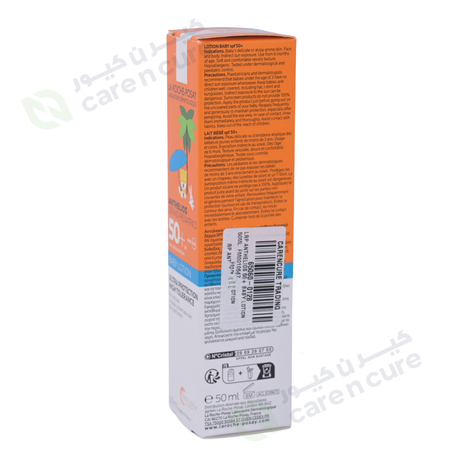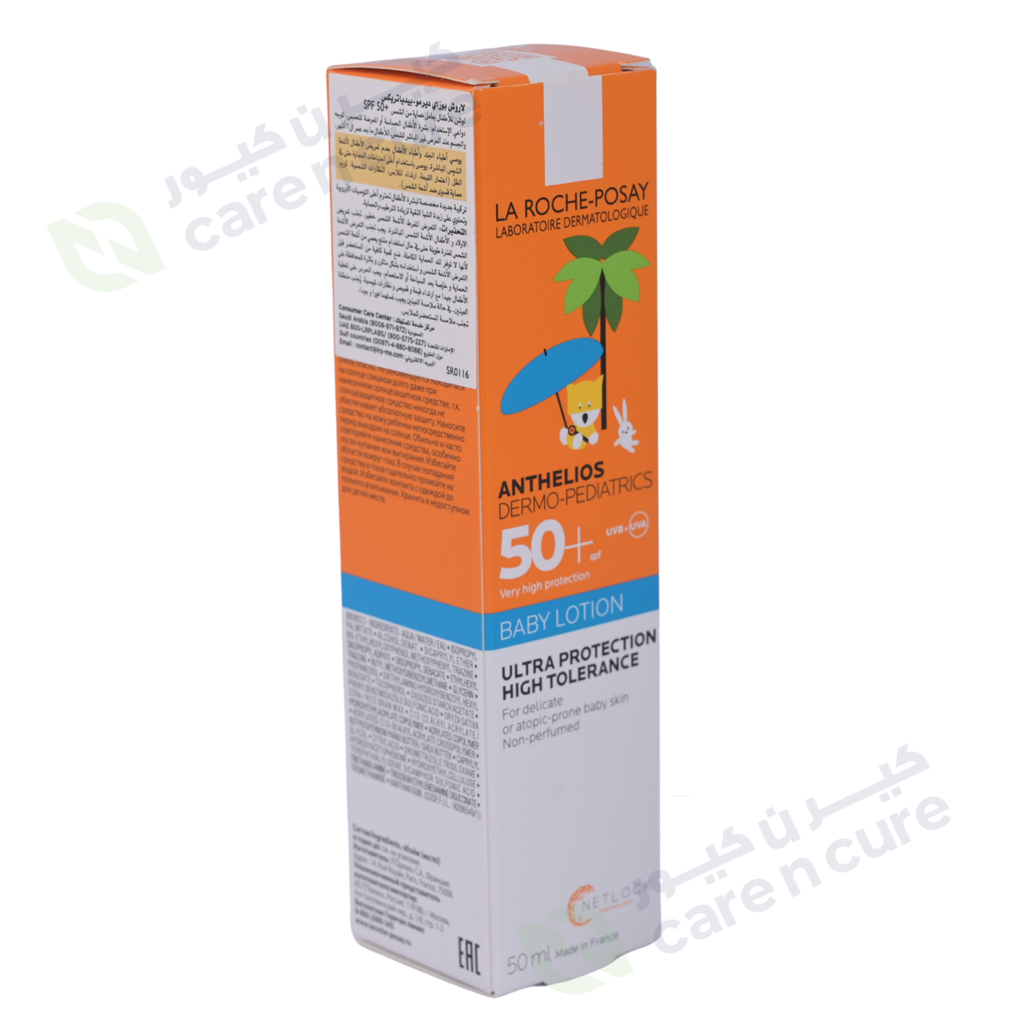 "ANTHELIOS DERMO-PEDIATRICS LOTION BABY SPF50+ / UVA-PF39 هو واقي شمس تم اختباره من قبل أطباء الجلدية للأطفال، يوفر حماية عالية جداً من الأشعة فوق البنفسجية واسعة الطيف لبشرة الأطفال الحساسة أو المعرضة للإصابة بالأكزيما. مناسب لبشرة الأطفال الحساسة. التعرض غير المباشر لأشعة الشمس. يُستخدم من عمر 6 أشهر."
