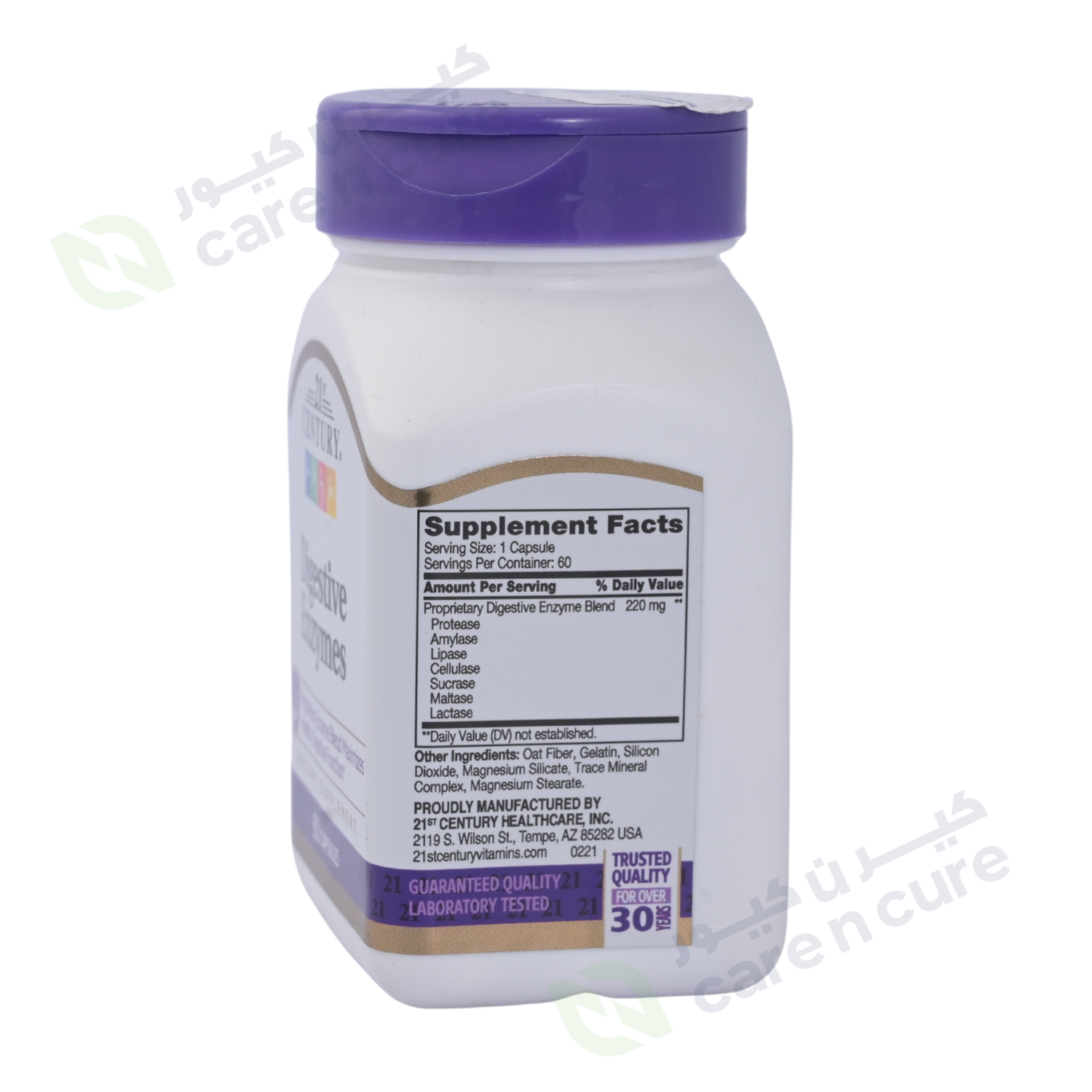 إنزيمات 21st Century Digestive Enzymes عبارة عن مزيج إنزيمي هضمي خاص تمت صياغته لزيادة وظيفة الجهاز الهضمي الصحية.