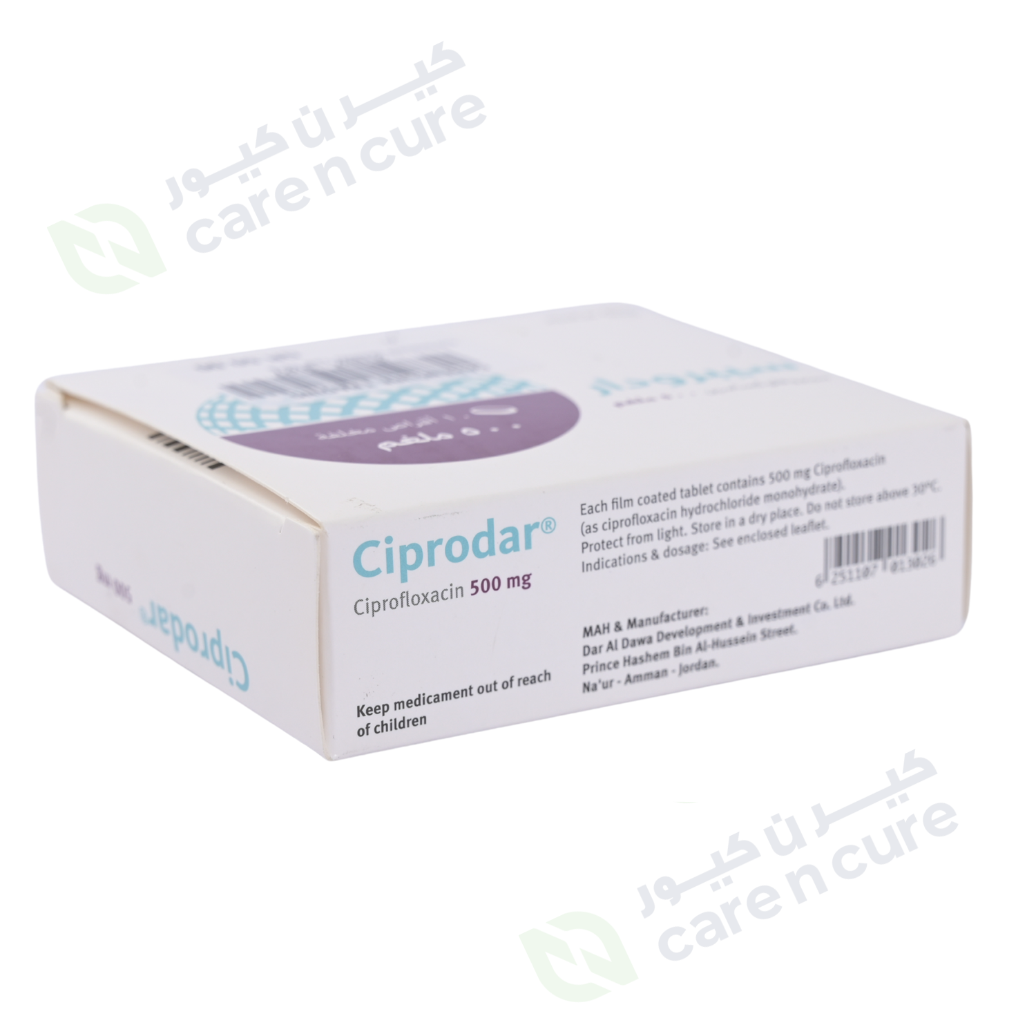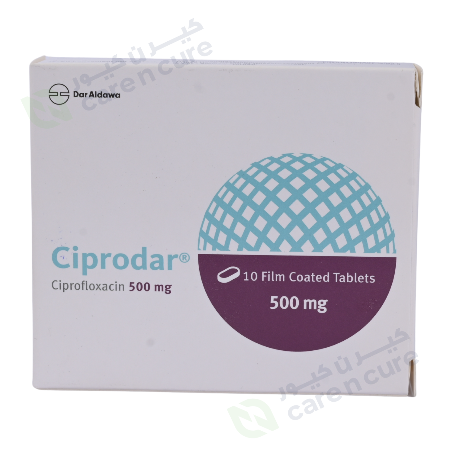يحتوي Ciprodar 500 Tablet 10 على فئة من المضادات الحيوية المعروفة باسم الفلوروكينولونات، والتي تستخدم بشكل أساسي لعلاج أو الوقاية من بعض أنواع العدوى التي تسببها البكتيريا. يوصف في علاج الالتهاب الرئوي، والسيلان (مرض ينتقل عن طريق الاتصال الجنسي)، وحمى التيفوئيد (عدوى خطيرة شائعة في البلدان النامية)، والإسهال المعدي (العدوى التي تسبب الإسهال الشديد)، والتهابات الجلد والعظام والمفاصل. والبطن (منطقة المعدة)، والبروستاتا (الغدة التناسلية الذكرية). العدوى البكتيرية هي حالة تنمو فيها البكتيريا في الجسم وتسبب العدوى. يمكنه استهداف أي جزء من الجسم ومتعدد بسرعة كبيرة.