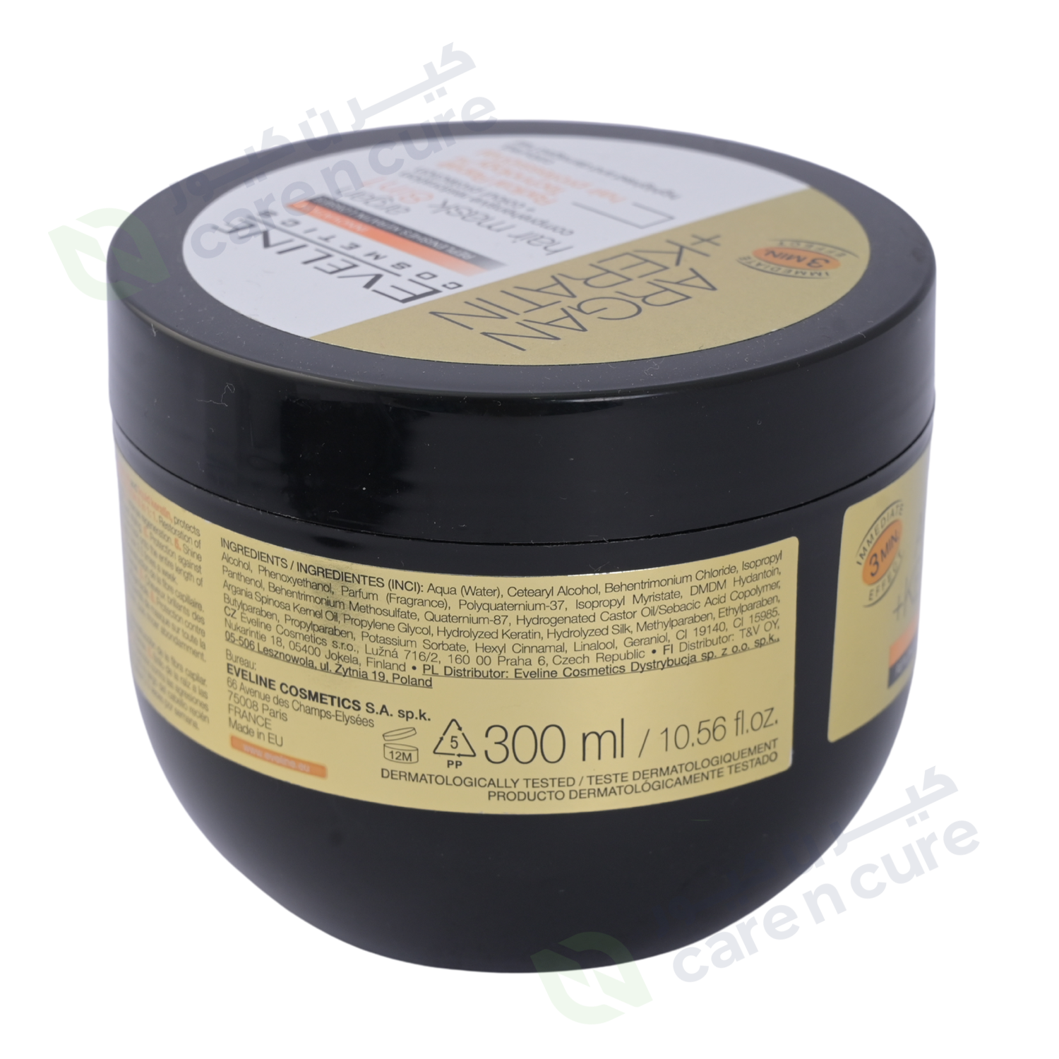 أكوا، كحول سيتريل، كلوريد بيهنتريمونيوم، كحول الأيزوبروبيل، فينوكسي إيثانول، عطر (عطر)، بولي كواترنيوم -37، إيزوبروبيل ميريستات، دي إم دي إم هيدانتوين، بانثينول، بيهنتريمونيوم ميثوسولفات، كواترنيوم -87، زيت الخروع المهدرج / كوبوليمر حمض السيباسيك، زيت نواة أرغانيا سبينوزا، البروبيلين جليكول, الكيراتين المتحلل، مستخلص الحرير المتحلل، ميثيل بارابين، إيثيل بارابين، بوتيل بارابين، بروبيل بارابين، سوربات البوتاسيوم، هيكسيل سينامال، لينالول، بوتيل فينيل ميثيل بروبيونال، جيرانيول، CI 9140، CI 15985.