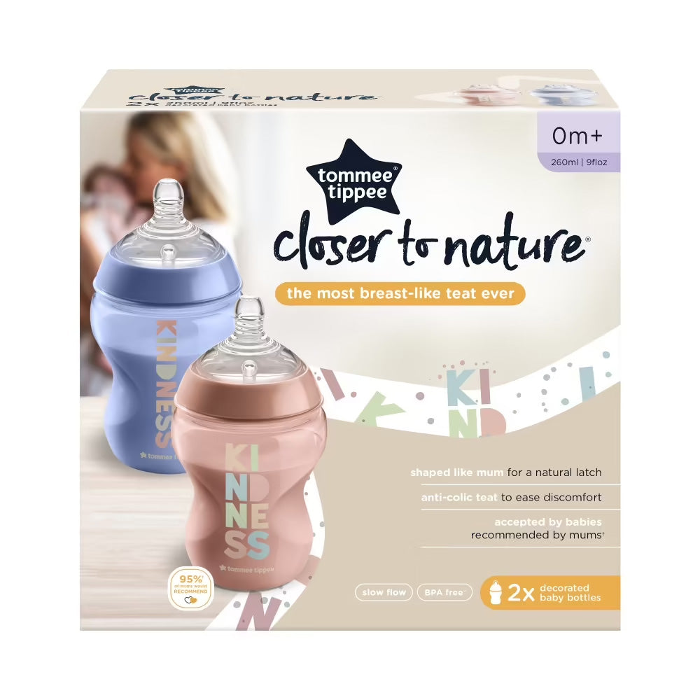 زجاجة رضاعة تومي تيبي كلوزر تو ناتشر، 260 مل × 2 - للبنات