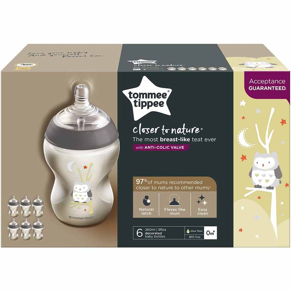 زجاجة رضاعة تومي تيبي كلوزر تو نيتشر، 260 مل × 6 - شفاف