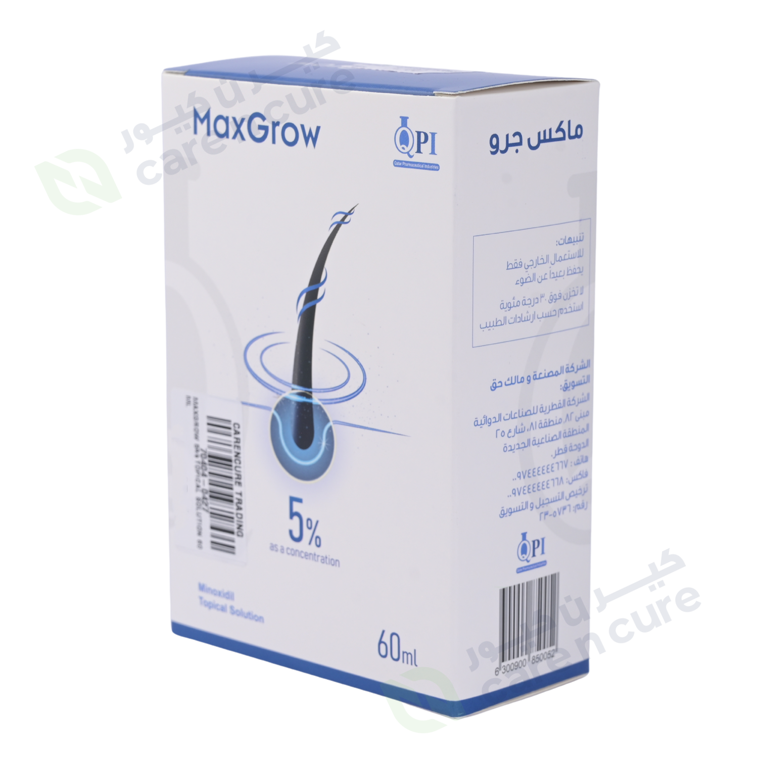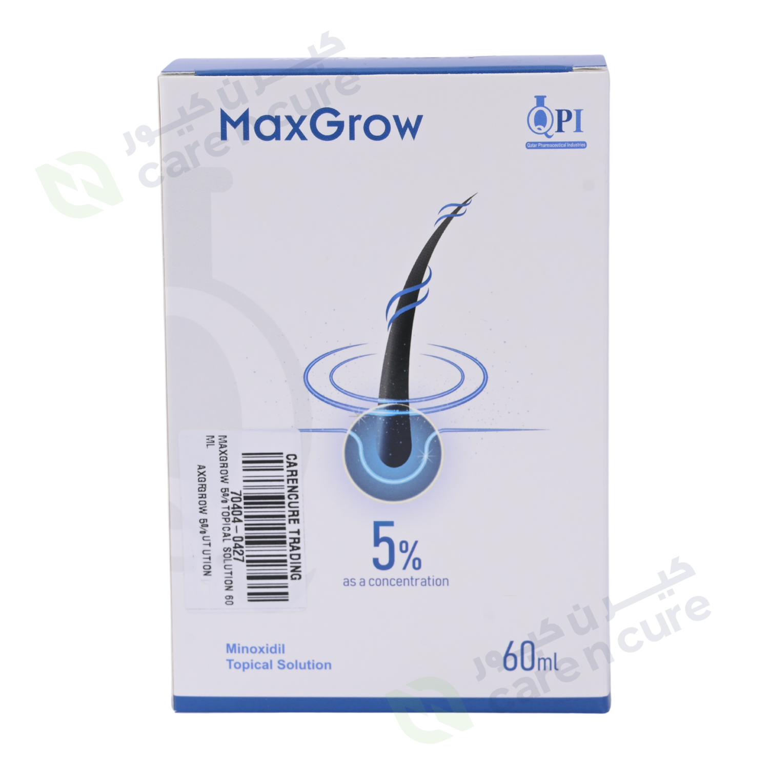 محلول ماكسغرو 5% الموضعي هو حل مثبت لنمو الشعر، يحتوي على تركيز 5% من المكون النشط مينوكسيديل. تم صياغته علمياً لإعادة تنشيط بصيلات الشعر وتحفيز نمو شعر جديد، وهو الحل المثالي لمن يسعون لمكافحة تساقط الشعر وترققه. شاهد نتائج ملحوظة مع الاستخدام المنتظم.