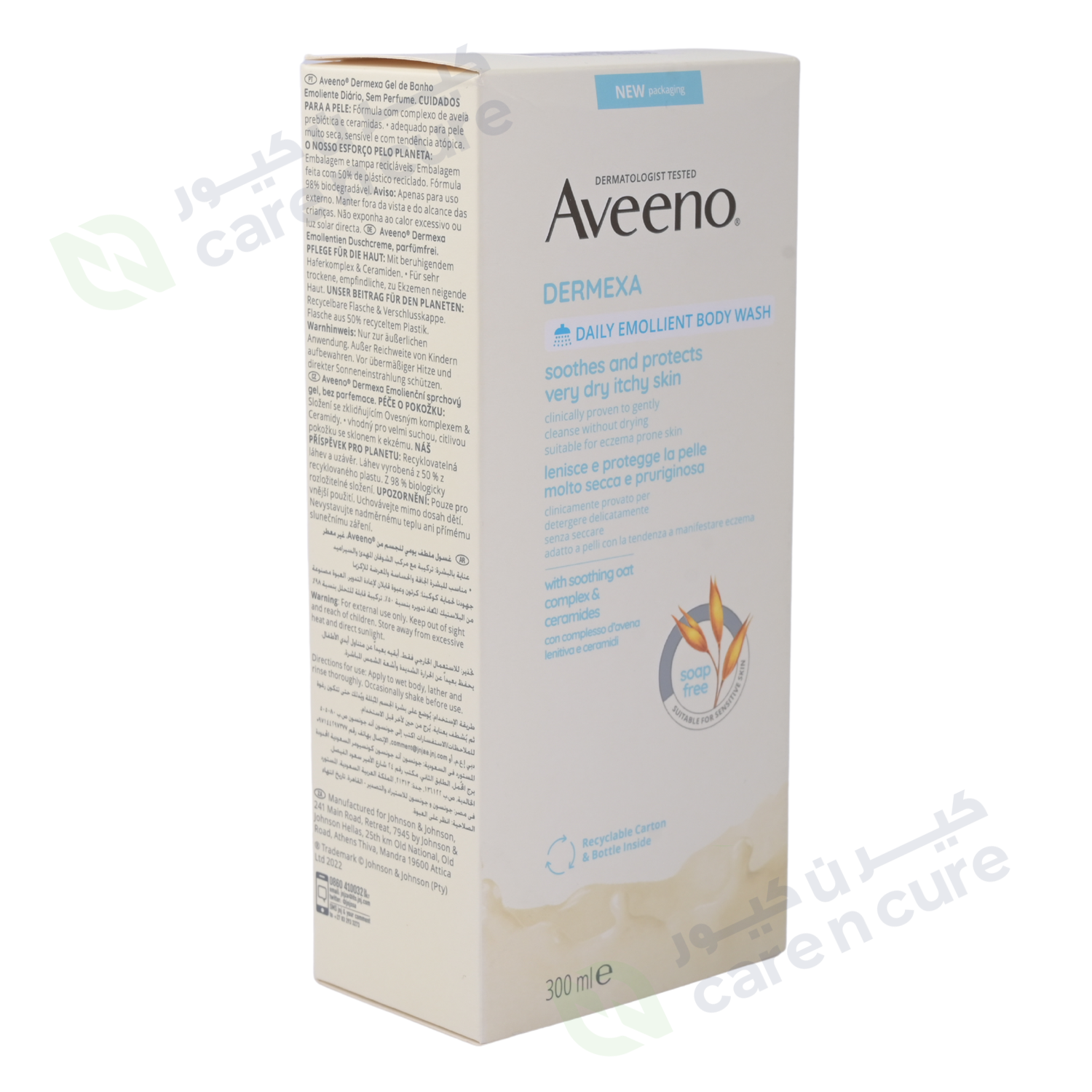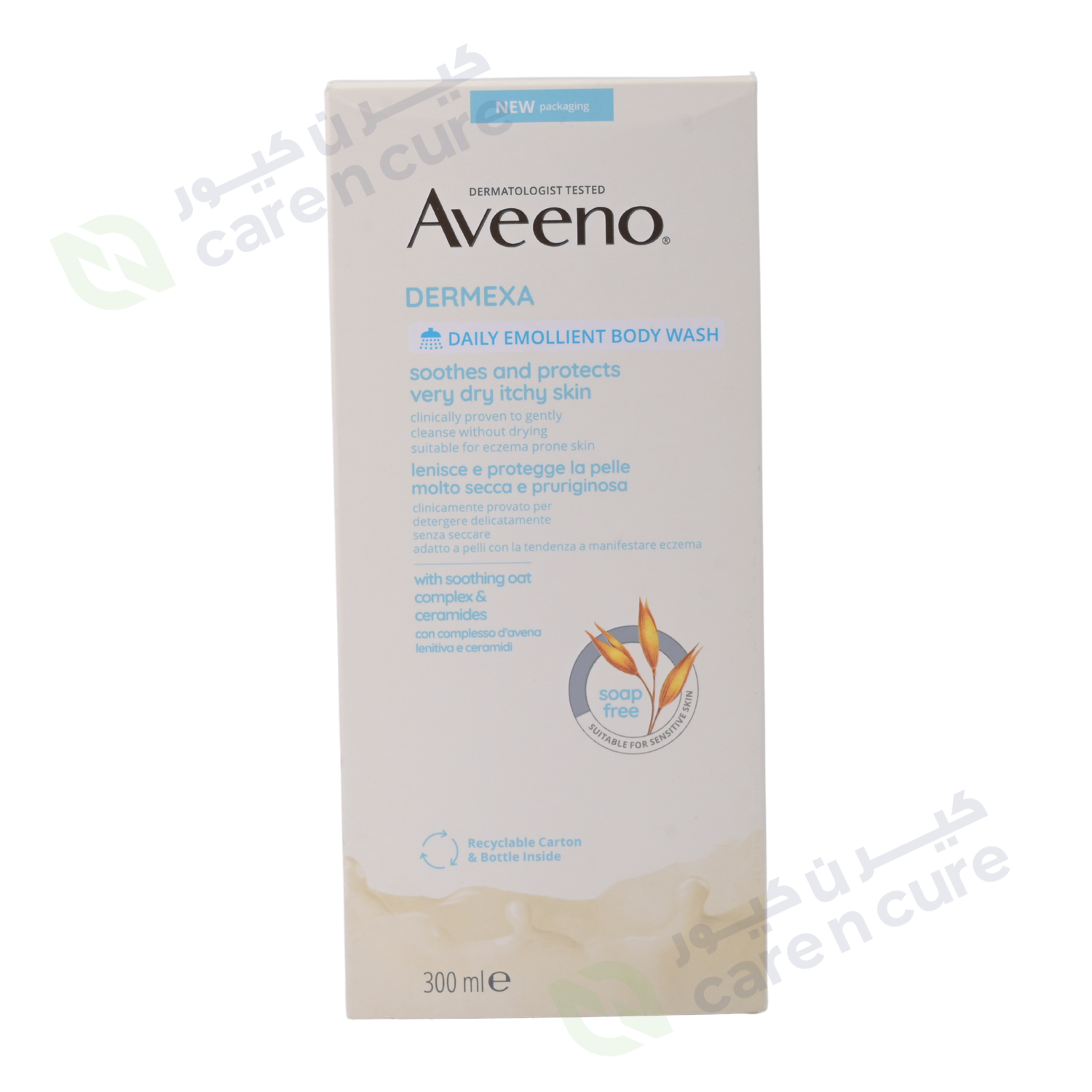 يتكون من مركب الشوفان البريبايوتيك* والسيراميد. تنظف التركيبة بلطف دون تجفيفها وتترك البشرة تشعر بالرطوبة والهدوء. عند استخدامه كنظام، يساعد كريم وغسول AVEENO® Dermexa Daily Emollient Cream على تحسين توازن الميكروبيوم الطبيعي للبشرة للحصول على بشرة صحية وأكثر مرونة من اليوم الأول.