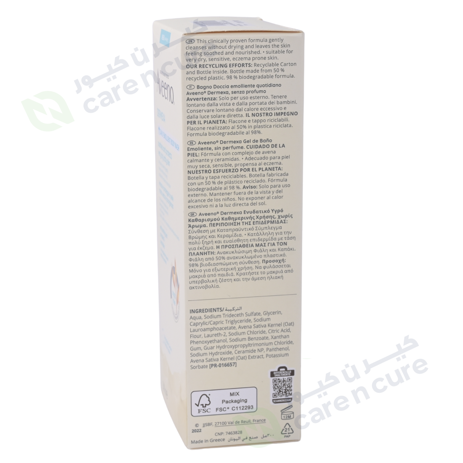 [PR-016657] أكوا، كبريتات تريديسيث الصوديوم، جليسرين، كابريليك/كابريك ثلاثي الغليسريد، لورو أمفواسيتات الصوديوم، دقيق نواة أفينا ساتيفا (الشوفان)، لوريث -2، كلوريد الصوديوم، حامض الستريك، مستخلص نواة أفينا ساتيفا (الشوفان)، سيراميد 3، بانثينول، كلوريد الغار هيدروكسي بروبيل تريمونيوم. ، صمغ الزانثان، الصوديوم هيدروكسيد، فينوكسي إيثانول، سوربات البوتاسيوم، بنزوات الصوديوم.