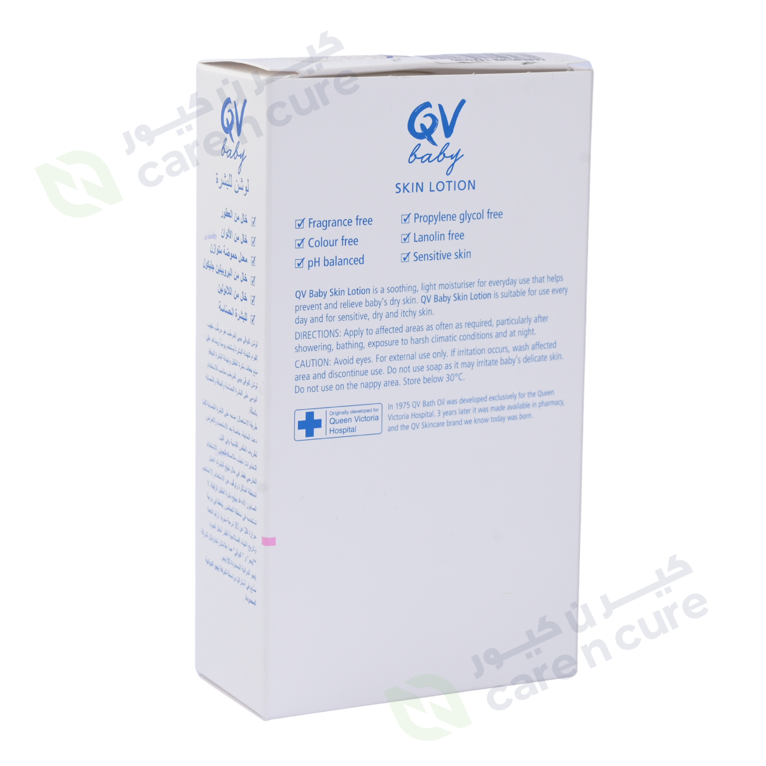 QV Baby Skin Lotion is a soothing, light moisturiser that helps relieve baby’s dry skin. QV Baby Skin Lotion is suitable for use every day and with sensitive skin or dry skin conditions.