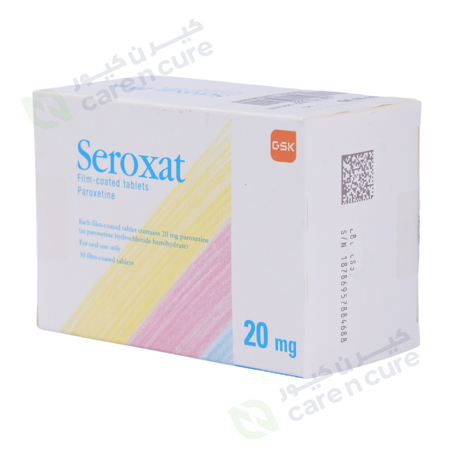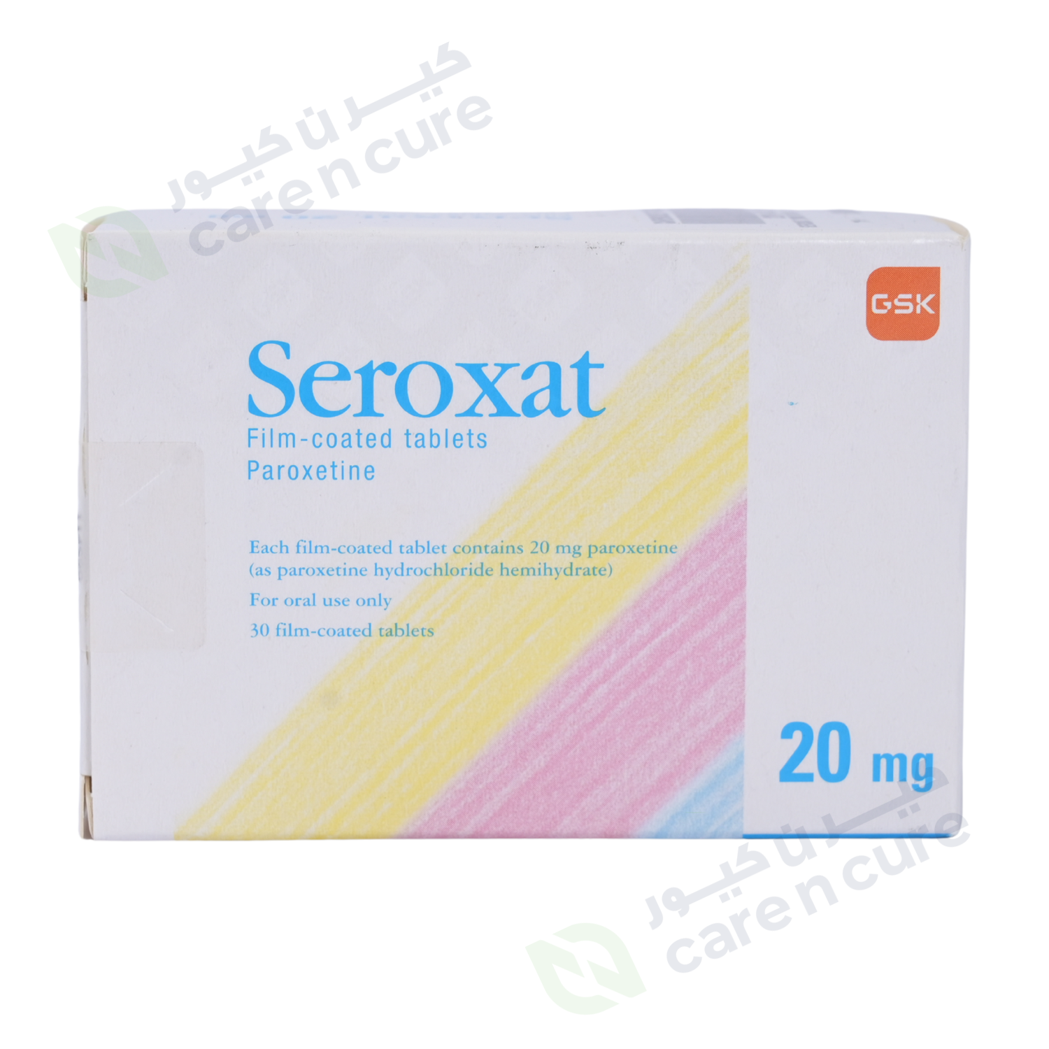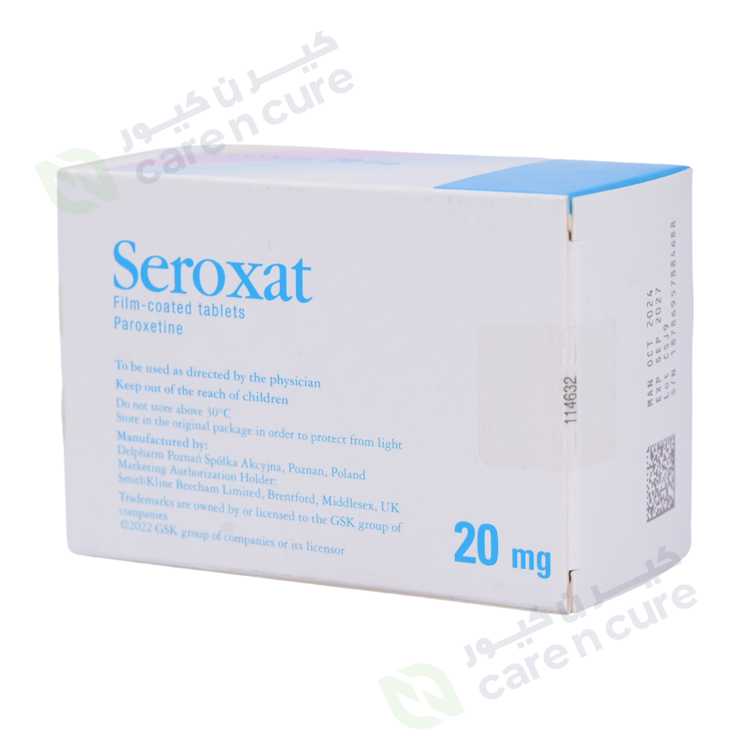 Seroxat tablets contains Paroxetine 20 mg which is used in the treatment of depression, obsessive-compulsive disorder, phobia and post traumatic stress disorder.