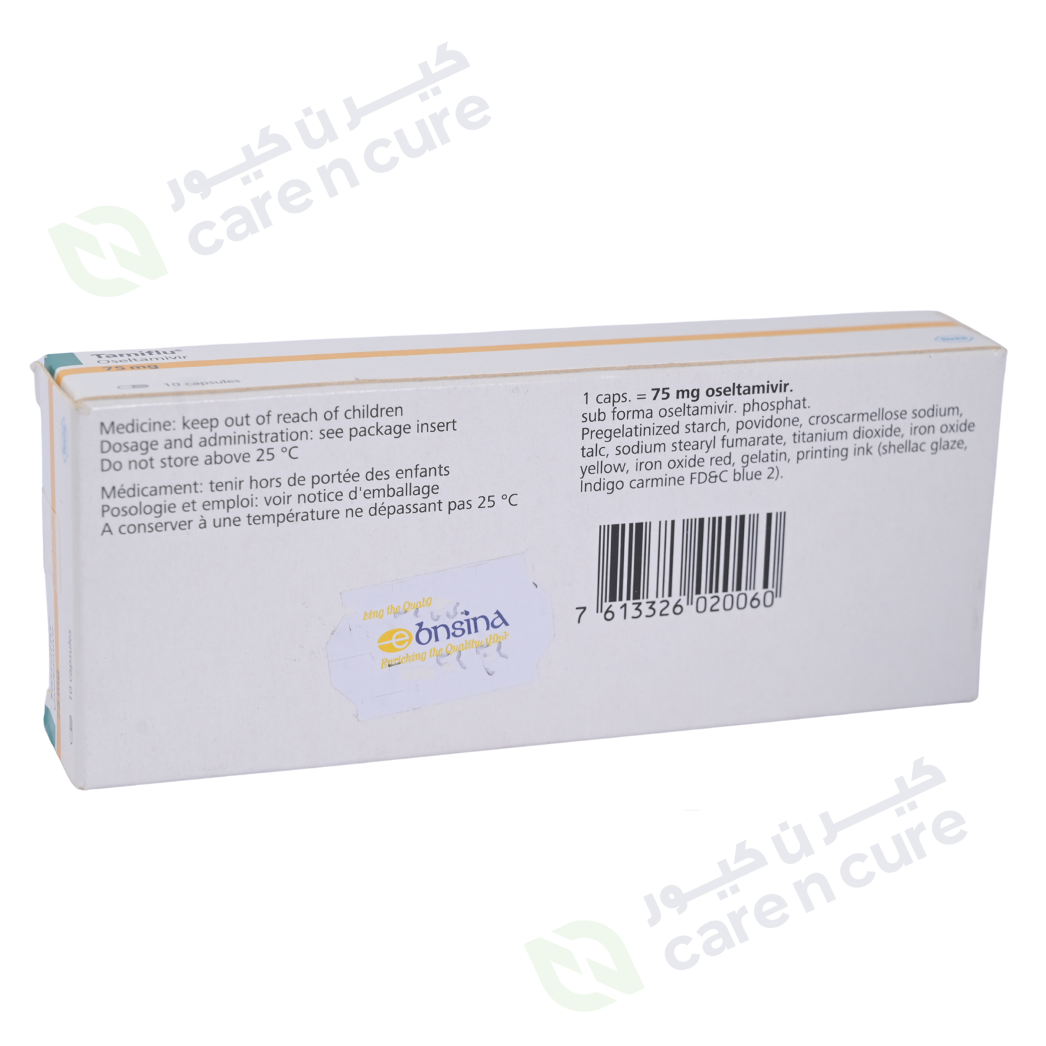 Tamiflu 75mg Capsules are an antiviral medication used to treat and prevent influenza (flu) and swine flu (H1N1 virus). This medication helps reduce flu symptoms, including fever, chills, sore throat, cough, body aches, fatigue, headache, and nasal congestion. Tamiflu 75 works by inhibiting the spread of the virus in the body, helping patients recover faster and preventing complications.