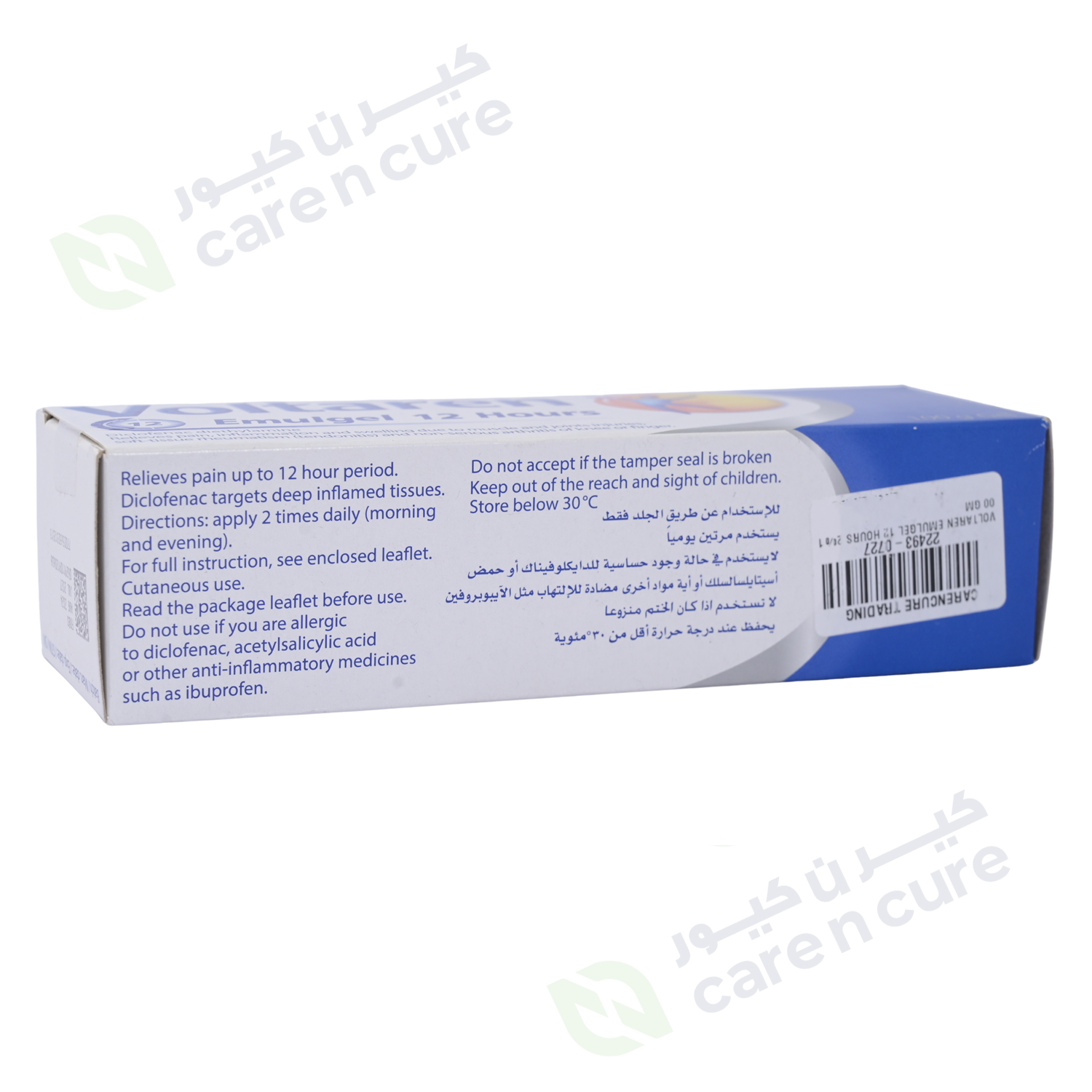 Voltaren emulgel is a topical anti-inflammatory gel for the relief of pain and swelling. Voltaren emulgel contains an active ingredient called diclofenac that is one of the groups of medicines called non-steroidal anti-inflammatory analgesics. Voltaren emulgel is used to relieve pain and reduce swelling in a number of conditions affecting the joints and muscles. Voltaren emuglel is used to treat inflammation of tendons, ligaments, muscles and joints due to trauma, soft tissue rheumatism and localized rheumatic conditions like bursitis, and for aches and pains, back, neck, and shoulder pain.