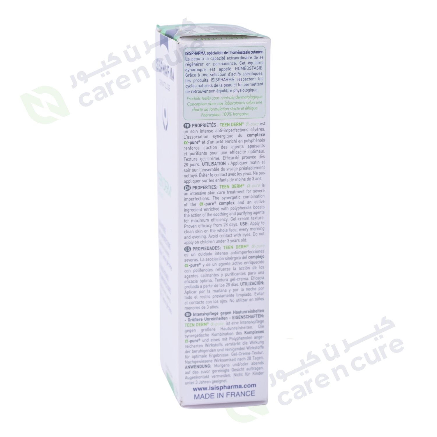 On the face and localized areas: Apply Teen Derm α-Pure intense anti-imperfections morning and night. Use it alone or in combination with drug therapy.