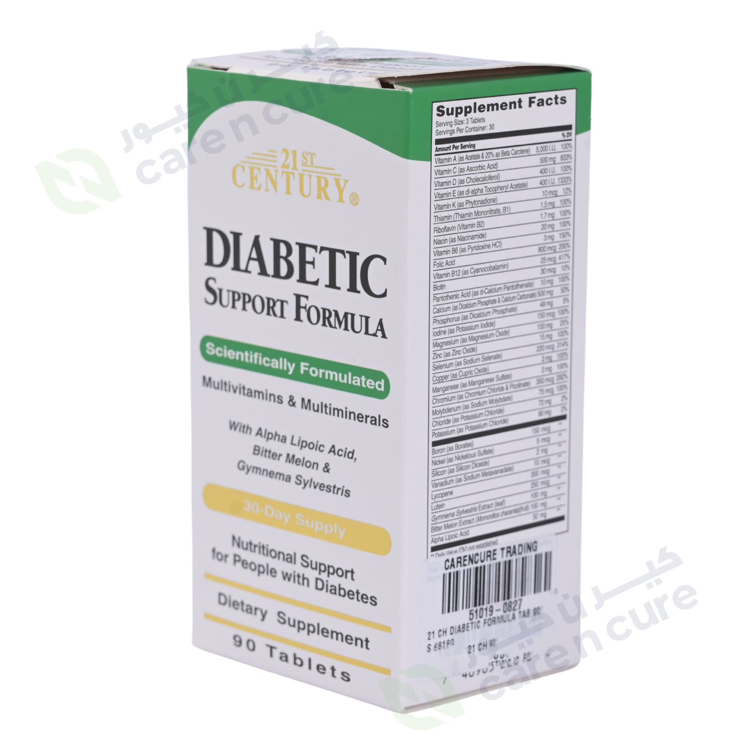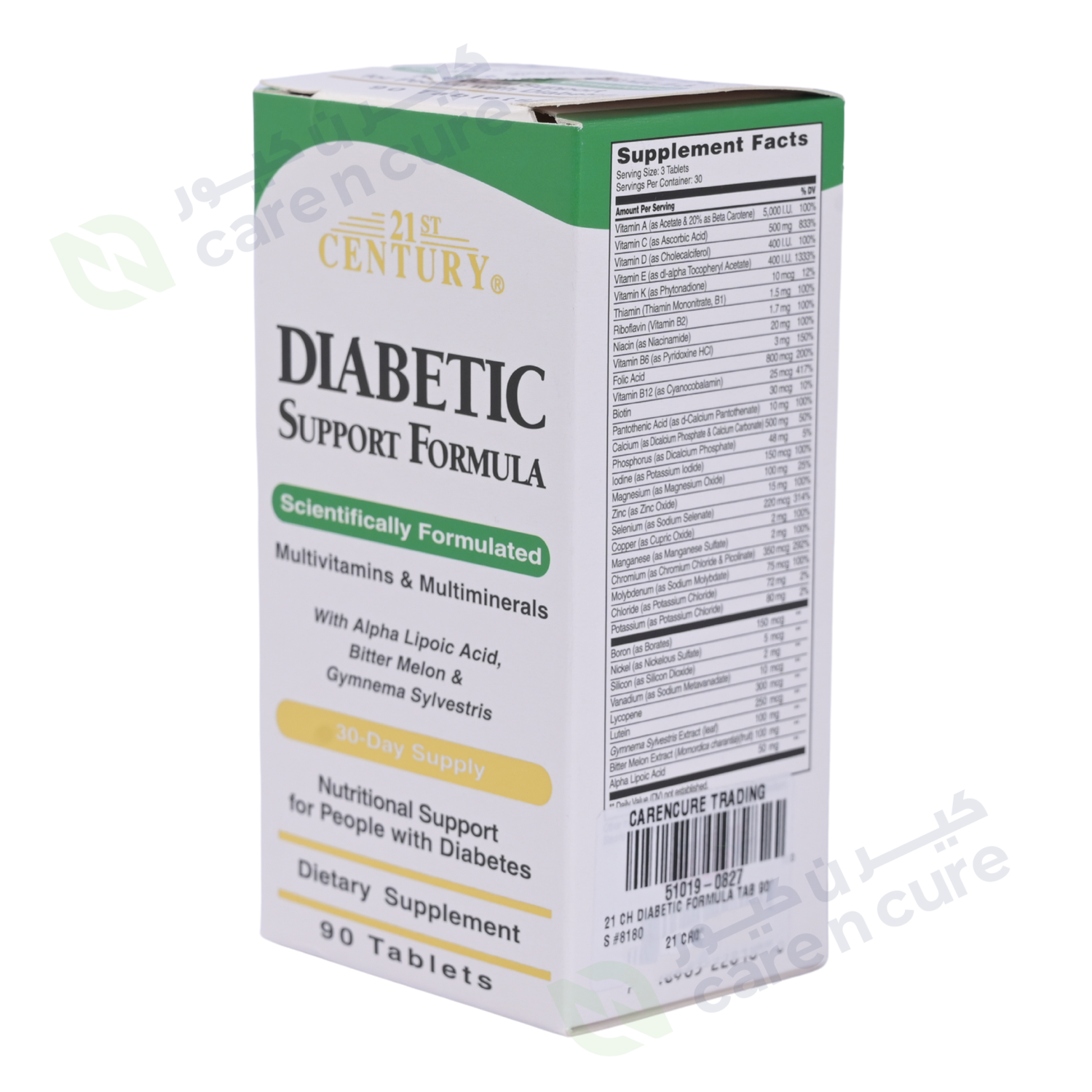21st Century's Diabetic Support Formula provides a dynamic combination of vitamins and minerals that could be low due to the stress that diabetics can have on a body. It includes the key anti-oxidant nutrients, Vitamin A, Vitamin C, Vitamin E, and Selenium, as well as, Alpha Lipoic Acid which, along with its anti-oxidant benefits, may help maintain healthy glucose metabolism. Folic Acid is added as support for normal heart health and Chromium Picolinate to aid in the normal metabolism of protein and fat. With added herbal support from Bitter Melon and Gymnema Sylvestris, 21st Century's Diabetic Support Formula is specifically designed as nutritional support for people with diabetes.