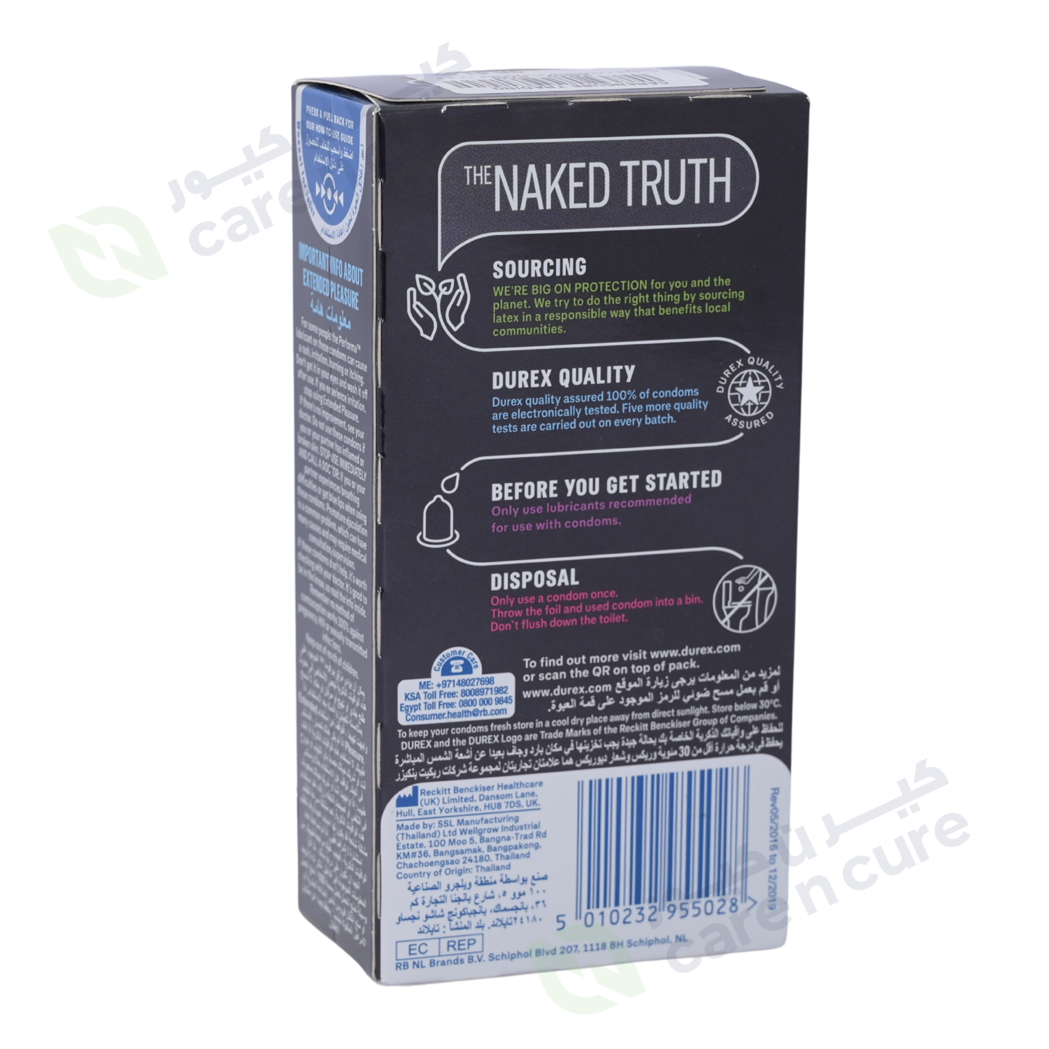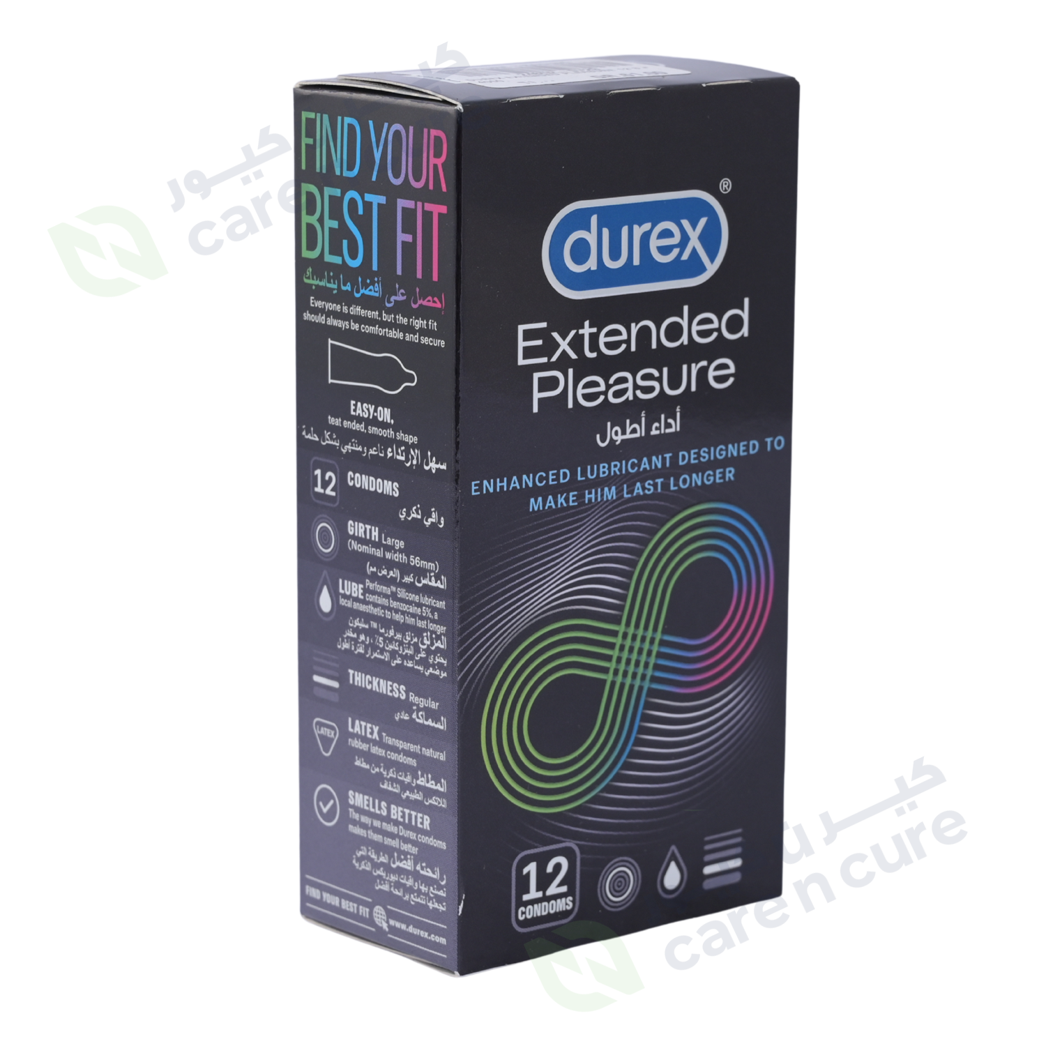 Durex Extended Pleasure condoms use a special lube - which contains benzocaine - inside the condom which helps him to delay climax and prolong excitement…..for longer-lasting sex. The special way we make Durex Extended Pleasure means they smell better so there are no unpleasant distractions, you can relax and enjoy.