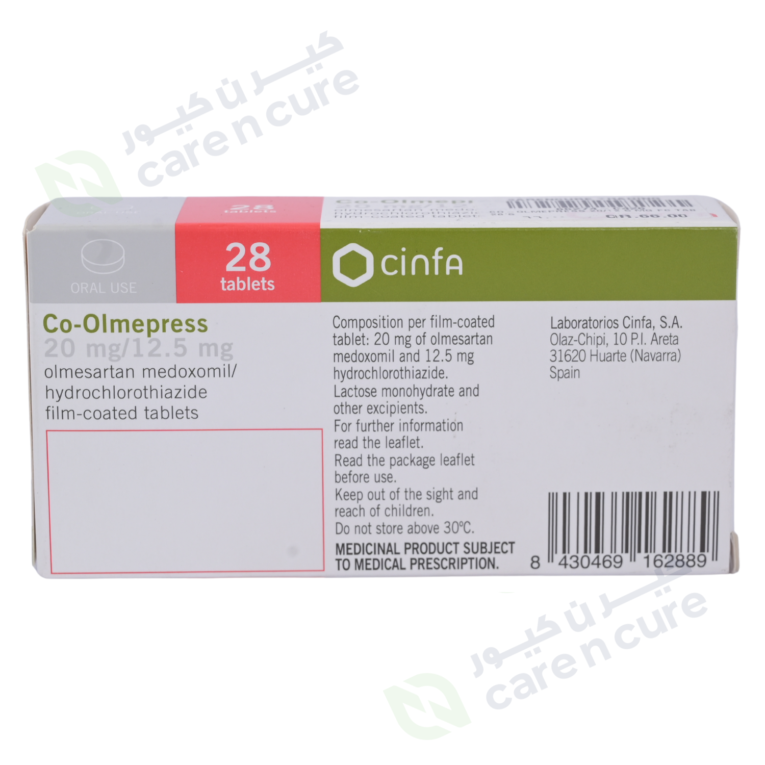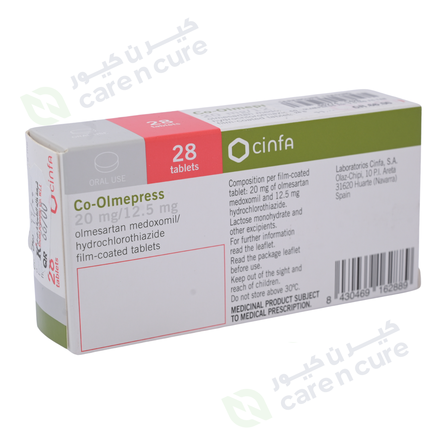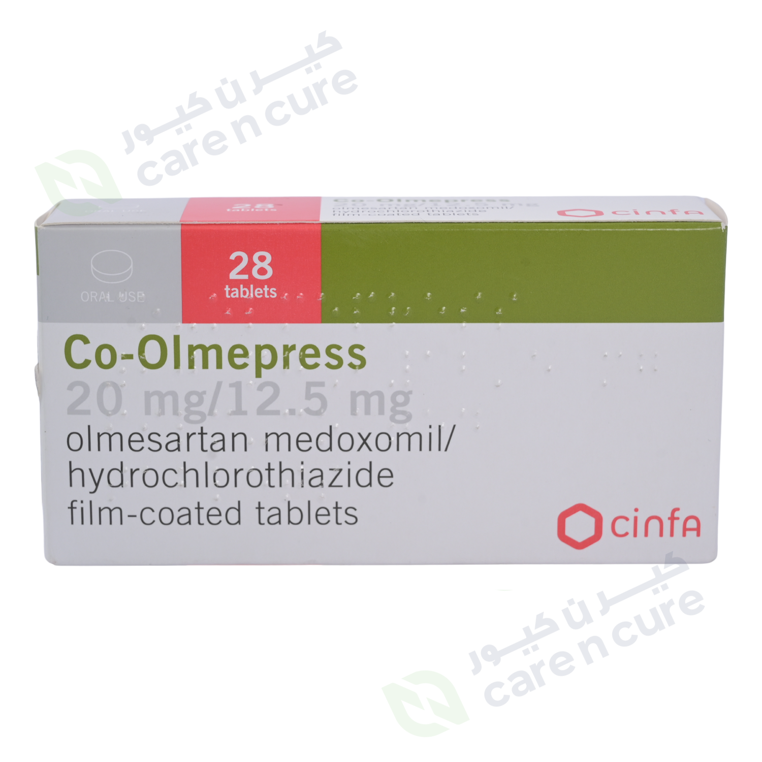 Co-Olmepress 20/12.5mg tablet contains two active substances, olmesartan medoxomil and hydrochlorothiazide, that are used to treat high blood pressure (hypertension):