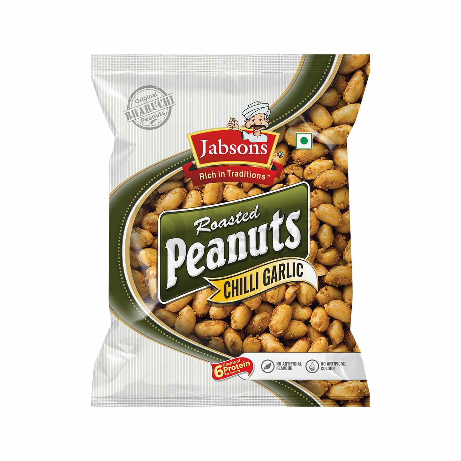JABSONS Chilly Garlic Flavor Peanuts are seasoned to perfection, delivering a            mouthwatering blend of spices. Made from the finest quality peanuts, each batch is carefully selected and roasted to crunchy perfection. Share the love of these delicious peanuts with friends and family. JABSONS “Clay Peanuts” contain only two ingredients—premium quality & Clay Roasted peanuts. No matter where you are, you can savor the taste of our Chilly Garlic Flavor Peanuts.