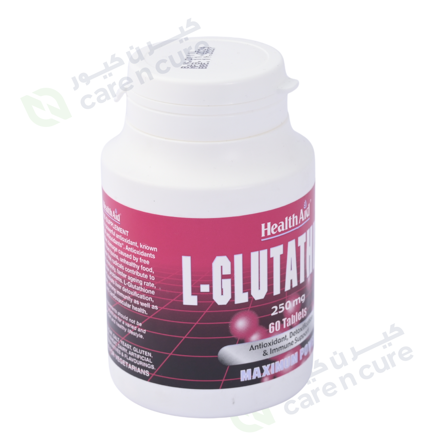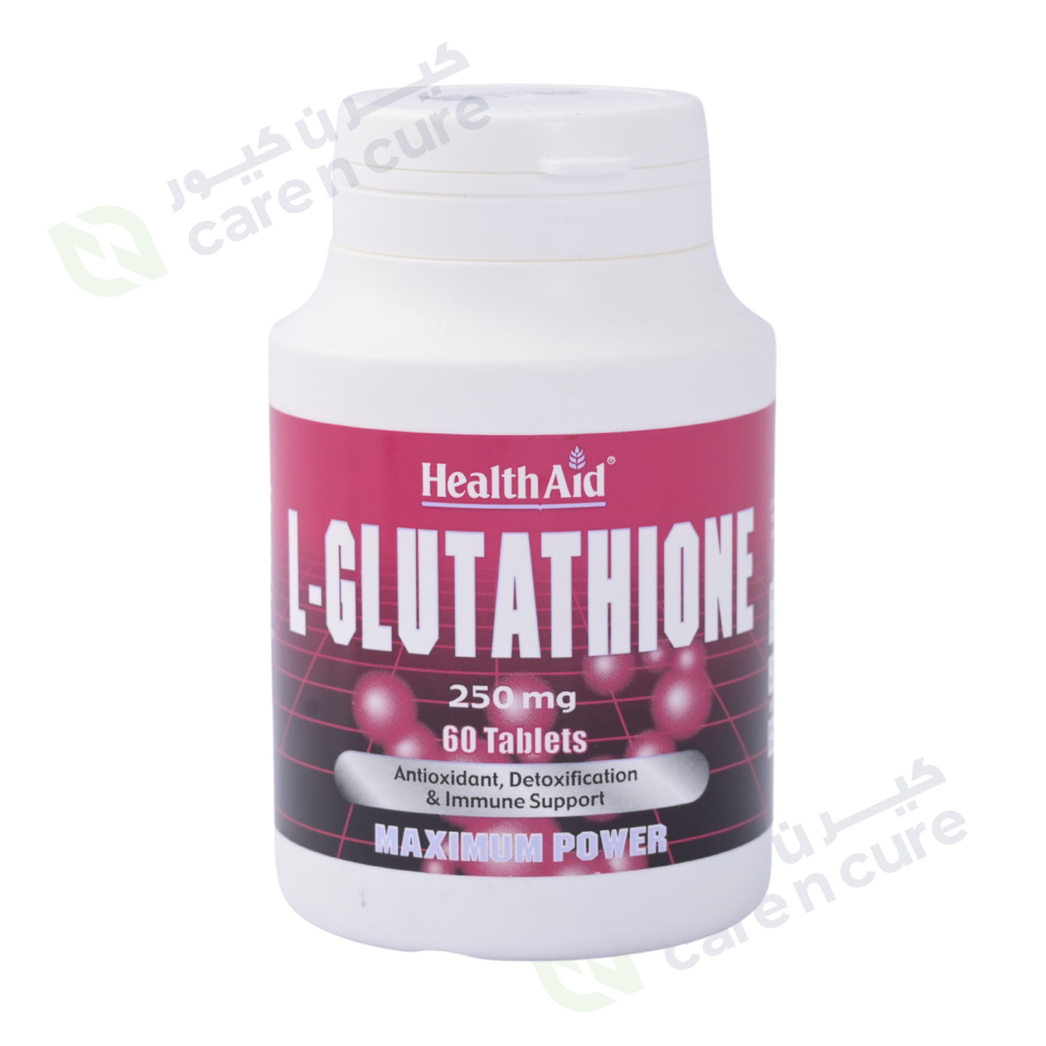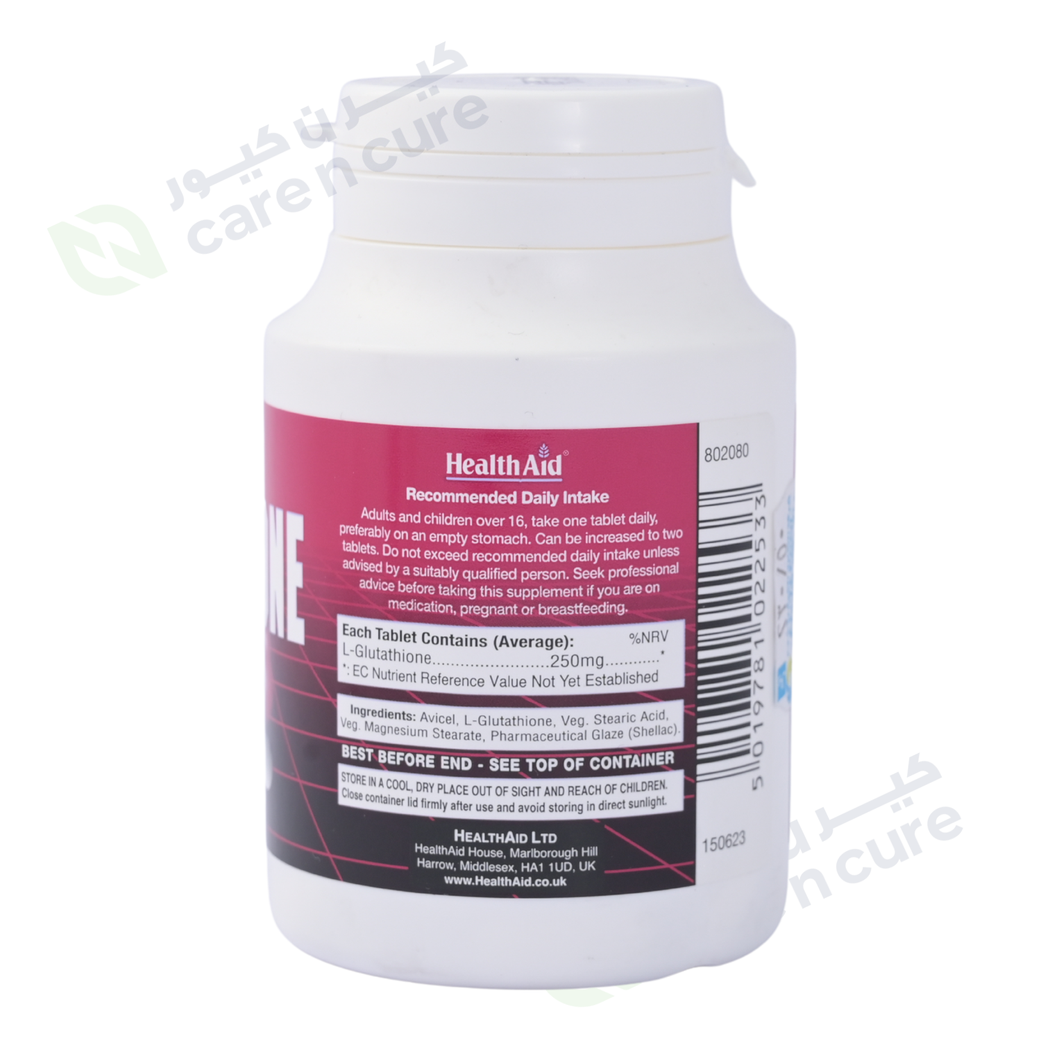 HealthAid L-Glutathione 250mg Tablets contain L-Glutathione, a natural amino acid known for its antioxidant and detoxifying properties. These tablets are used to support liver health, metabolism, energy production, and immune function.
