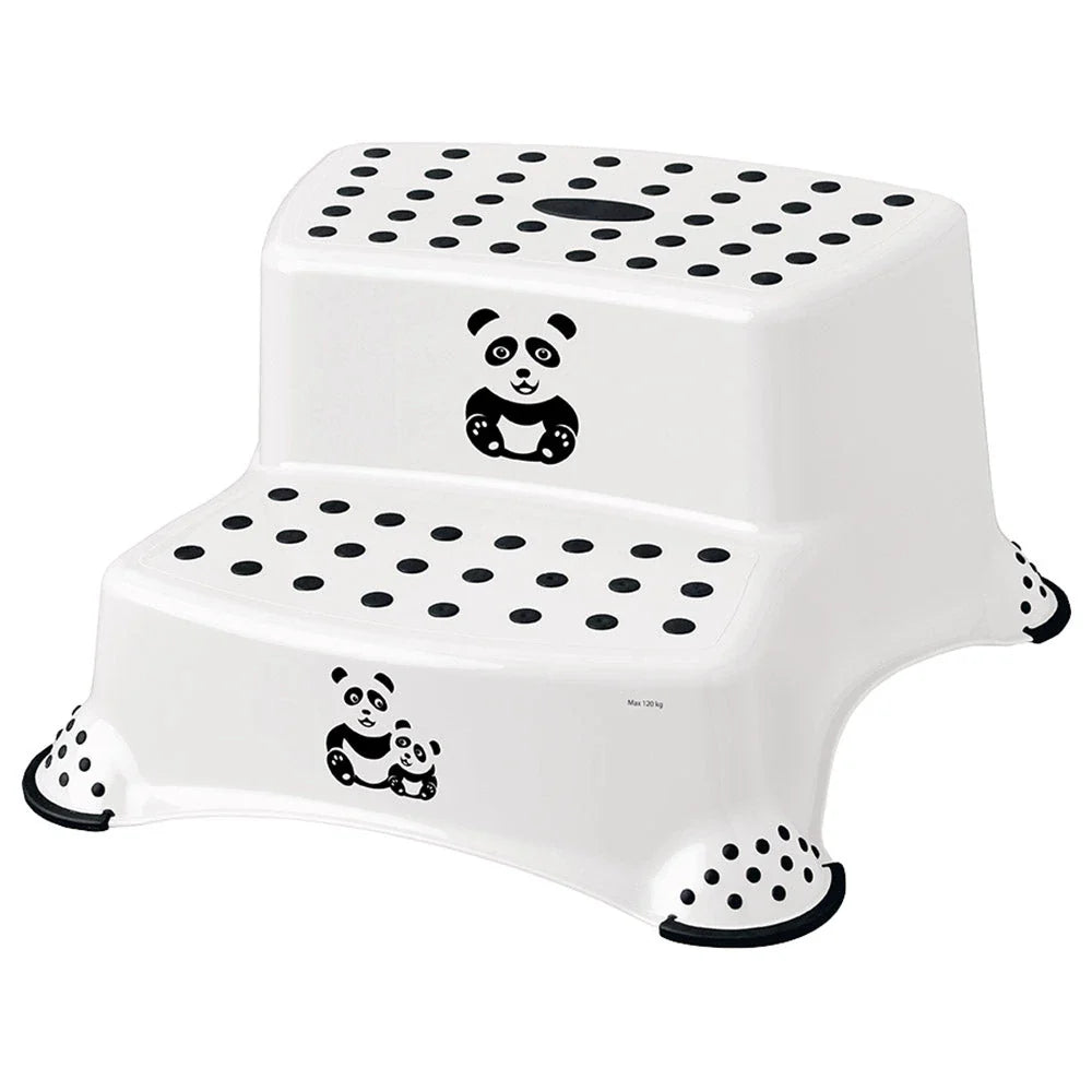 The step stool is perfect for children to achieve the toilet or the basin like grown ups do. Increased safety, due to the rubber surface and sturdiness for this product are assured. With a loading capacity up to 120 kg, even the parents can use this strong step stool.