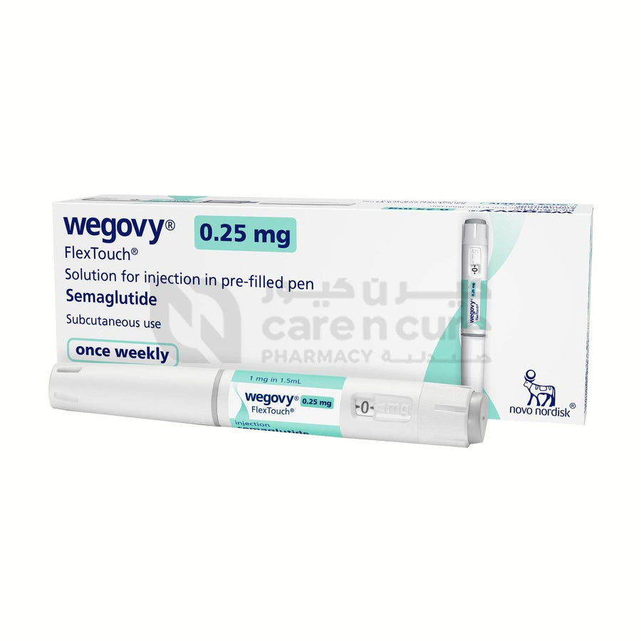 Wegovy 0.25mg solution for injection in a pre-filled pen contains semaglutide. Each pre-filled pen delivers 0.25mg of semaglutide in a 0.37mL solution and contains a total of 1mg of semaglutide in 1.5mL. The medication is used for weight loss and weight maintenance. The active ingredient, semaglutide, mimics a natural hormone and is provided in a pre-filled pen for ease of use.