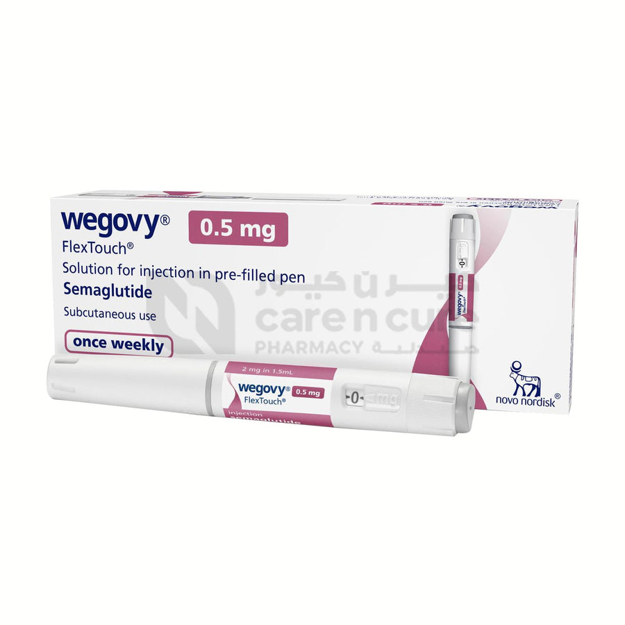 Wegovy 0.5mg is a solution for injection, containing semaglutide. The pre-filled pen delivers a 0.5mg dose in a 0.37mL solution. Each 1.5 mL pen contains 2mg of semaglutide, providing four doses. Wegovy is used for weight loss and maintenance in individuals with obesity or weight-related medical issues.