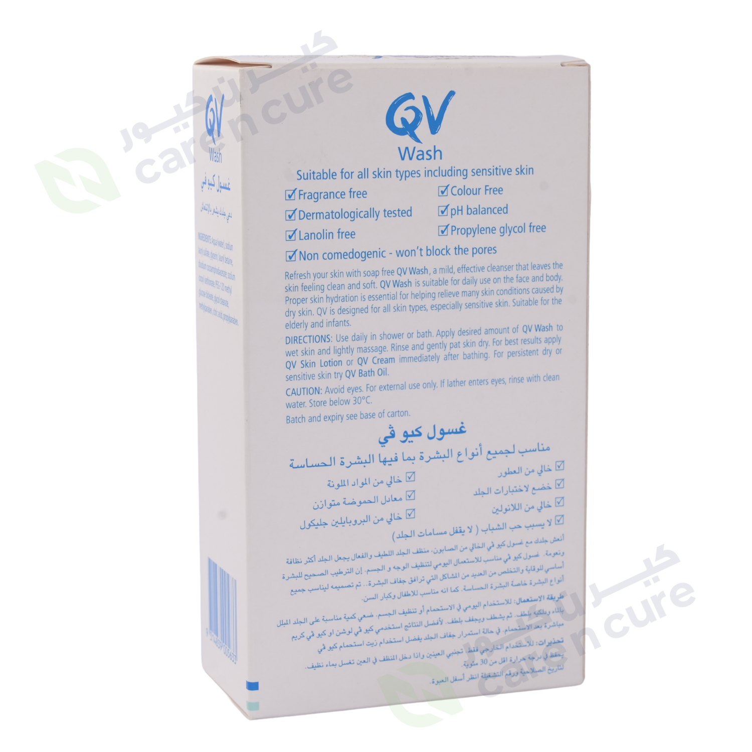 Soap-free cleanser for everybody, and every day. QV Body Wash is an effective, soap-free cleanser made for dry or sensitive skin. Lightly foaming on the skin, you can use it every day to leave skin soft and supple.