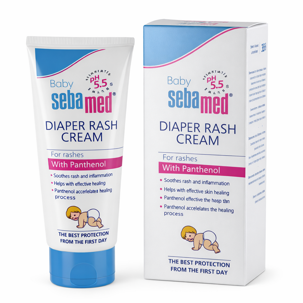 Apply a small amount of Sebamed wash or lotion as directed, lather gently, rinse, and pat dry. Use creams and rash ointments as needed after bath time or diaper changes.