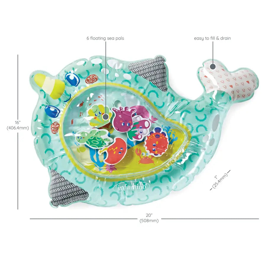This Large Squishable Mat Is Perfect For Muscle Strengthening During Tummy Time. Babies Will Giggle At And Love The Six Floating Sea Pals That Swim Off As They Try And Grab At Them With Little Hands. Baby Will Learn Cause And Effect When They Press On Different Areas Of The Mat And The Sea Pals Move Around In Different Directions. Unique Design & Extra Large; No Ordinary Shapes Here! This 18X27 Inches Nautical Themed Mat Is Shaped Like A Gigantic Narwhal Letting Baby Explore Its Squishy Tail And Other Baby Safe Edges. Who Doesn'T Love A Unicorn Of The Sea? Simply Fill The Outer Edge With Air And The Inner Mat With Water (There Is A Water Line To Show How High To Fill The Mat). Easily Deflates And Drains And Folds Up Tight For Babies On The Go!