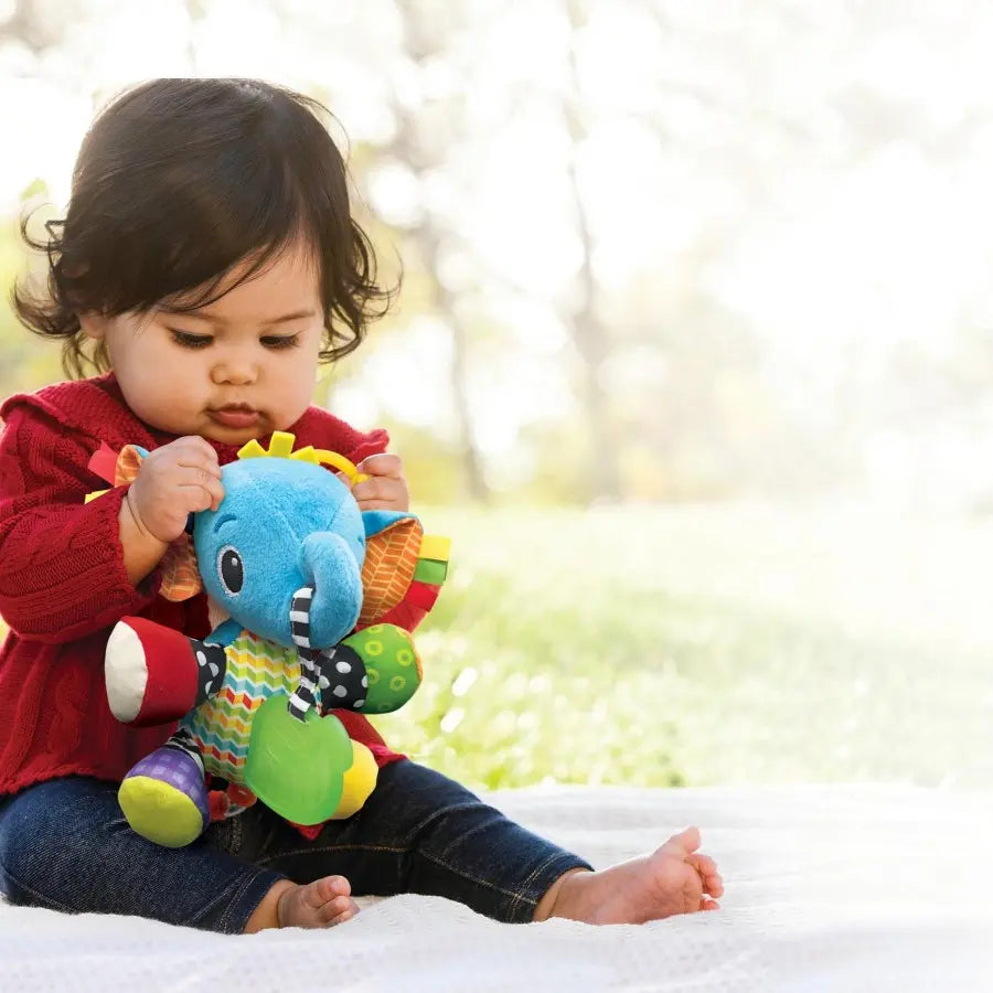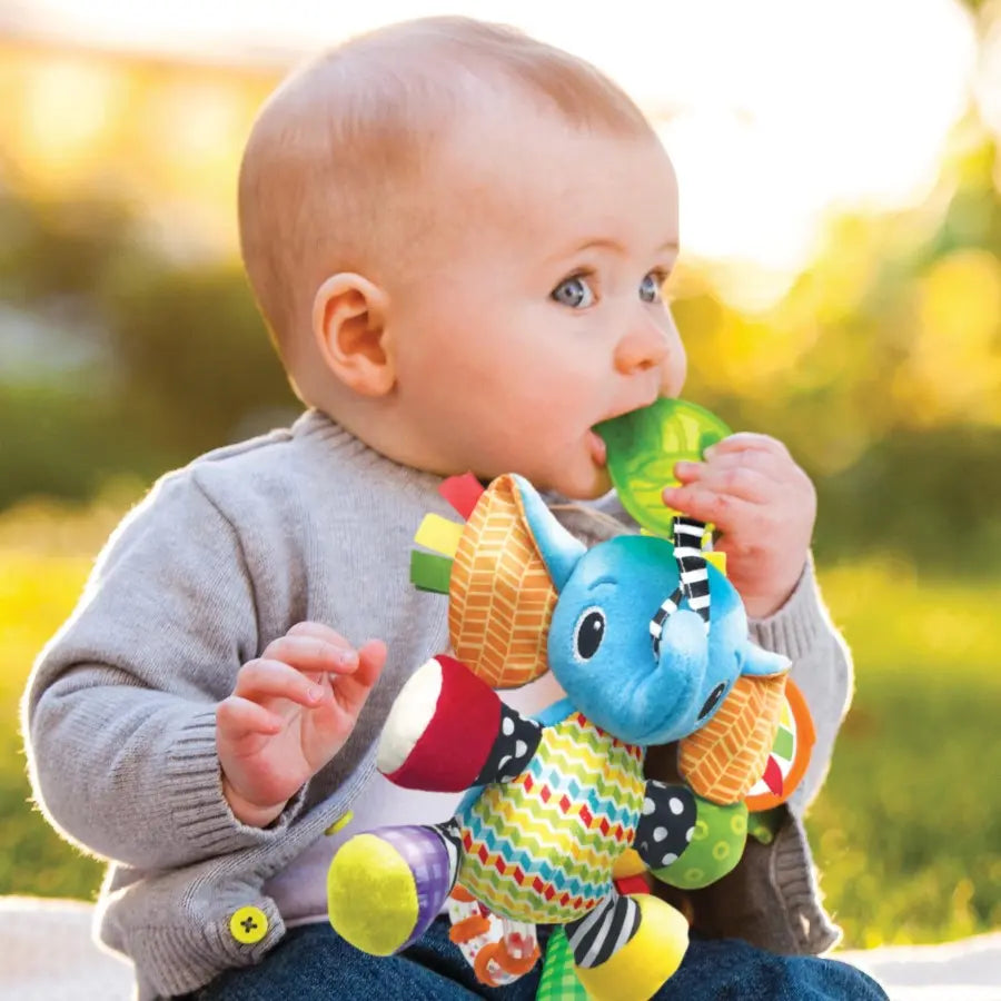 Meet Peanut The Elephant, Your Baby'S New Favorite Activity Pal! With Crinkly Ears, A Squeaker, And A Teether, This Soft Plush Toy Is Perfect For Engaging Your Little One'S Senses And Encouraging Playtime. A Cute And Cuddly Companion For On-The-Go Fun!