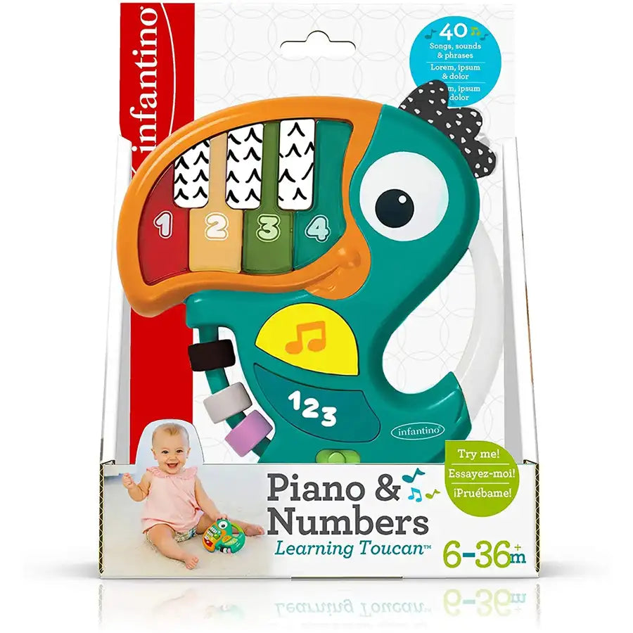 Infantino'S Piano & Numbers Learning Toucan In Green Is A Fun And Educational Toy For Little Ones. With A Piano Keyboard And Colorful Numbers, This Interactive Bird Helps Children Learn While They Play. Perfect For Enhancing Fine Motor Skills And Number Recognition.