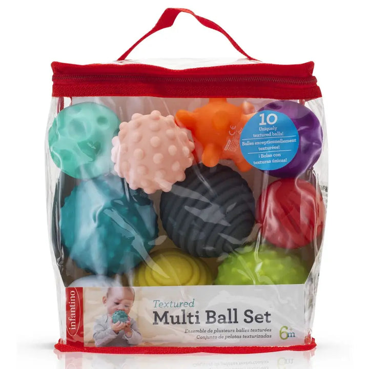 Infantino Textured Multi-Ball Set Comes With Bright Colors And Interesting Textures That Makes This Fun Ball Set Feel Imaginative! Touch And Feel Uniquely Textured Balls Of Different Shapes And Sizes. Perfect For Sensory Exploration And Tactile Development. Number Of Pieces: 10.Helps Develop Tactile Senses.